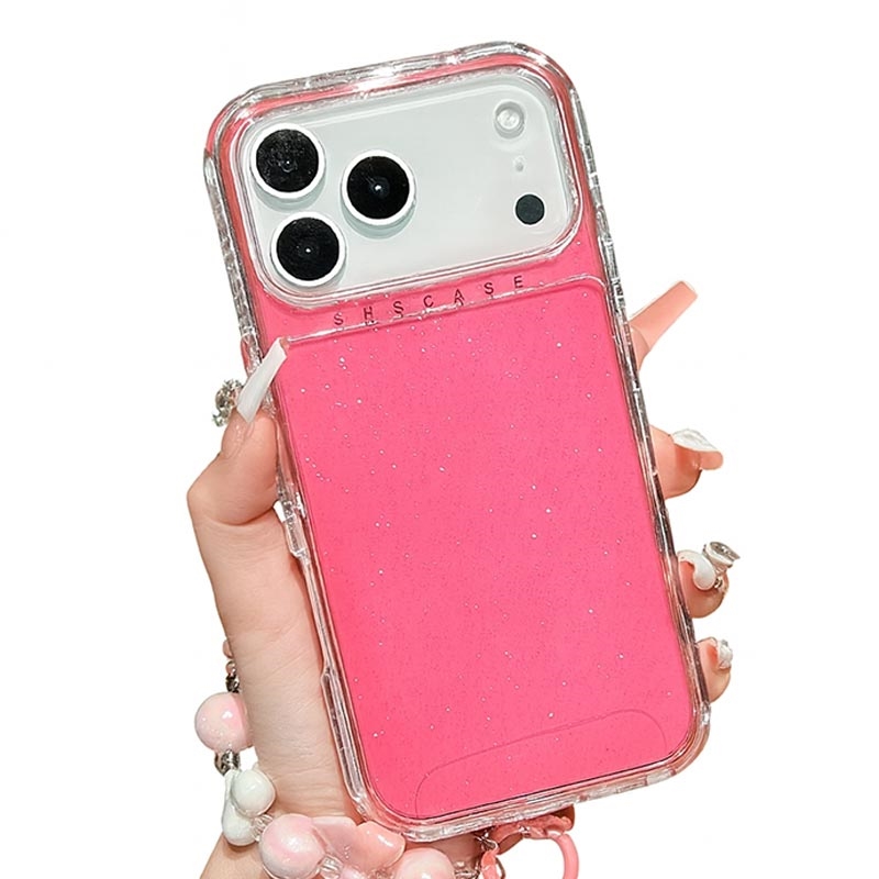 Funda híbrida antigolpes con purpurina para iPhone 17 Pro Max con correa para la muñeca - Rosa Fuerte
