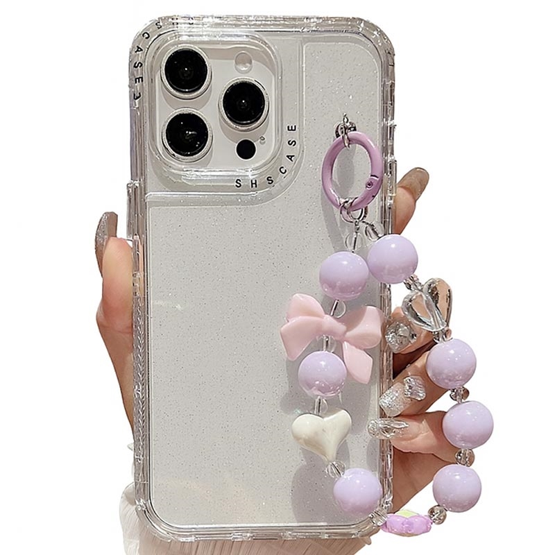 • Funda híbrida antigolpes con purpurina y correa de muñeca para iPhone 16 Pro Max - Funda protectora de PC + TPU