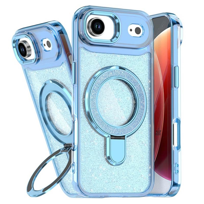 Funda híbrida con soporte para iPhone Air Glitter - Compatible con MagSafe - Azul