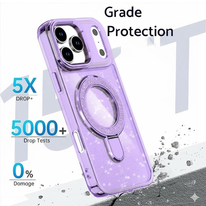• Funda de purpurina con soporte para iPhone 17 Pro - Compatible con MagSafe Funda híbrida de TPU + PC con soporte para iPhone 17 Pro