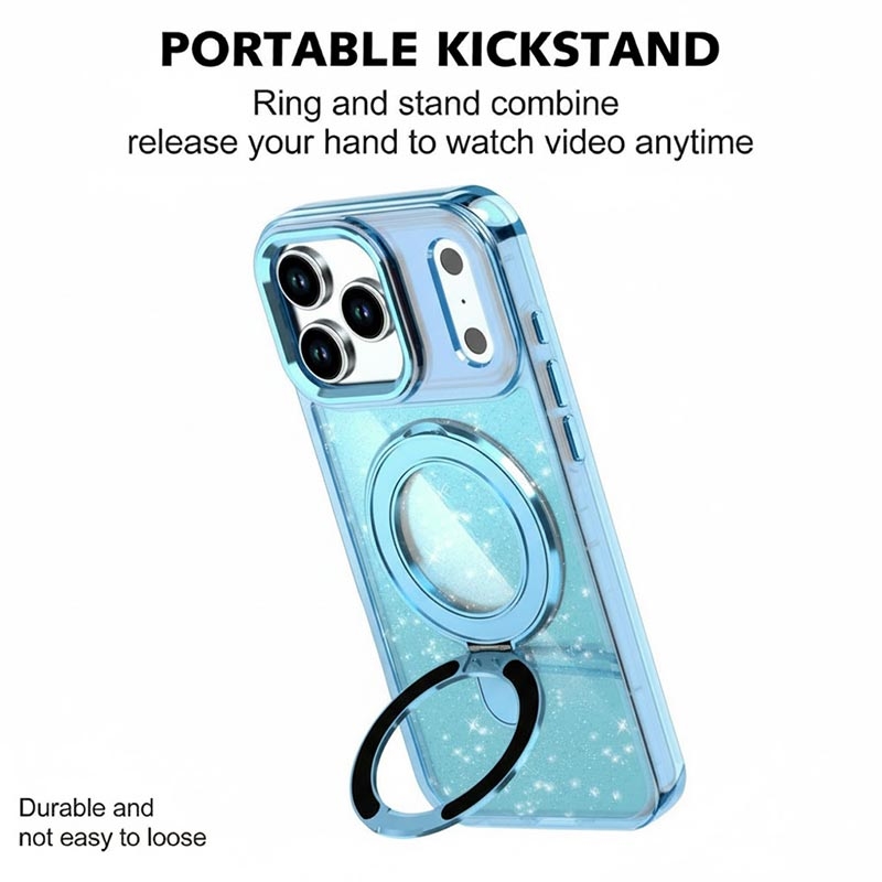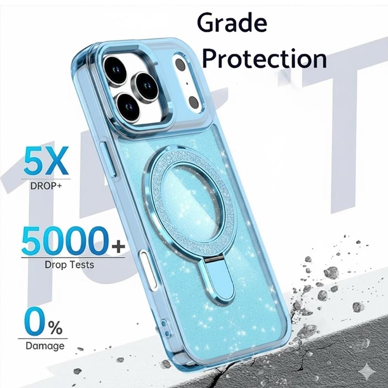 Funda híbrida con soporte para iPhone 17 Pro Max Glitter - Compatible con MagSafe - Azul