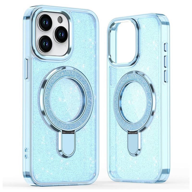 Funda híbrida con soporte para iPhone 16 Pro Max Glitter - Compatible con MagSafe - Azul