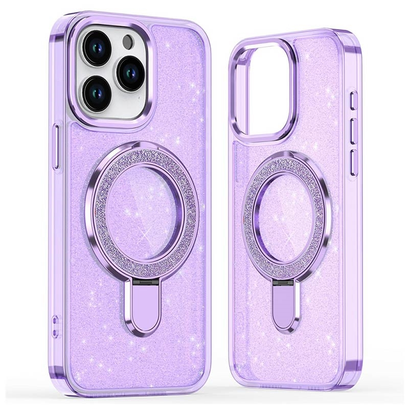 Funda híbrida con soporte para iPhone 16 Pro Max Glitter - Compatible con MagSafe - Morado