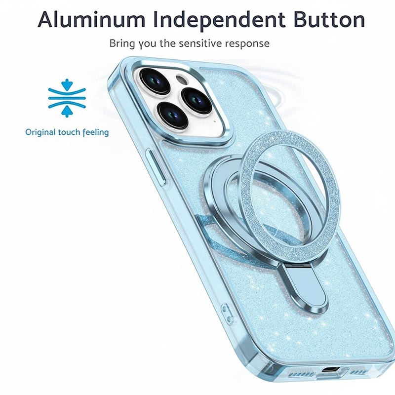 Funda híbrida con soporte para iPhone 16 Pro Glitter - Compatible con MagSafe - Azul