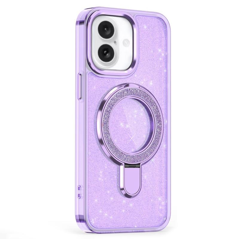 Funda híbrida con soporte para iPhone 16 Glitter - Compatible con MagSafe - Morado