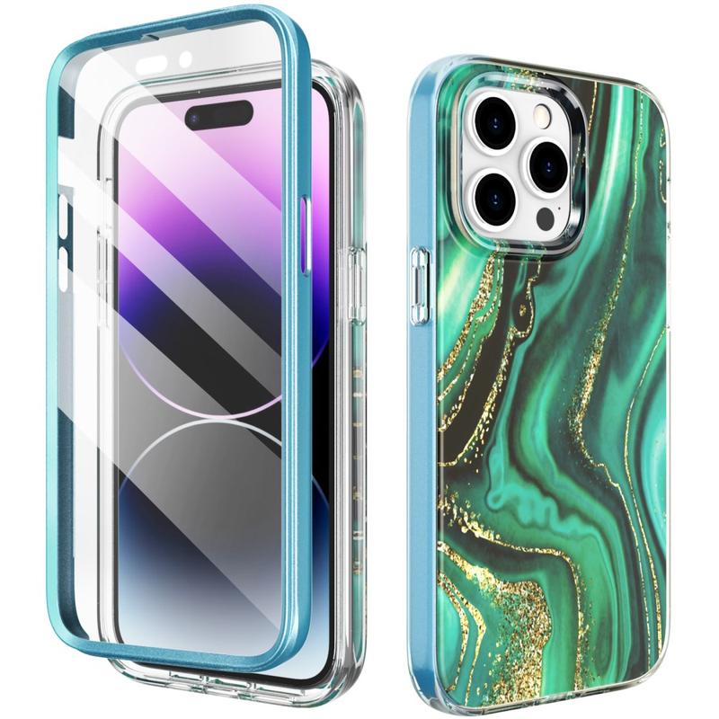 Funda híbrida de protección 360º para iPhone 15 Pro Max Ahastyle WE13 - Mármol verde