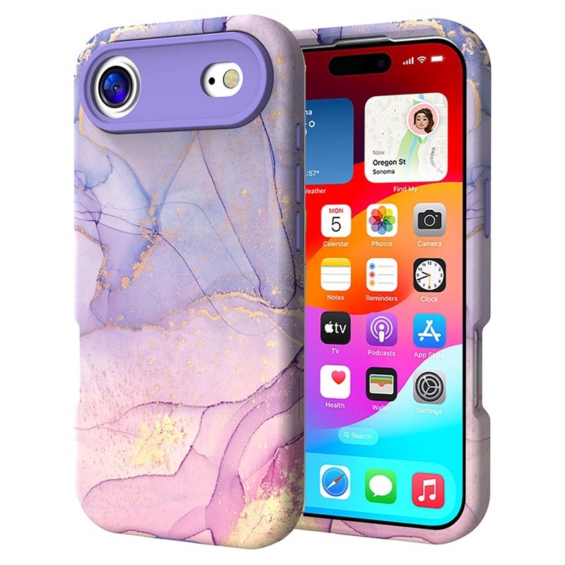 Funda híbrida de mármol de lujo para iPhone Air - Púrpura / Rosa
