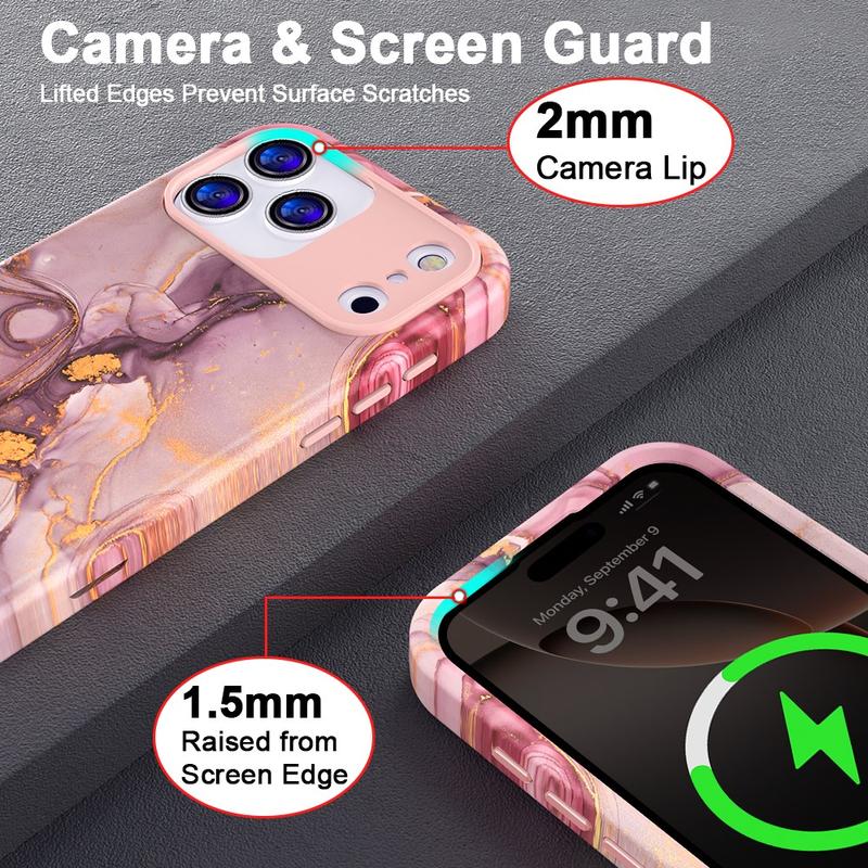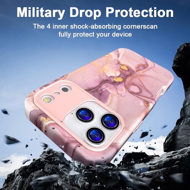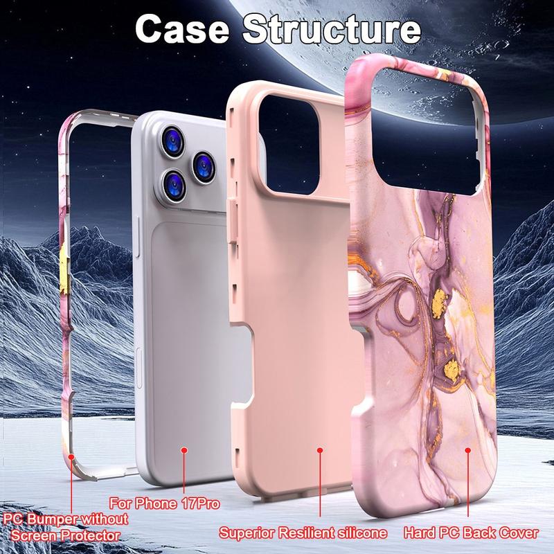 • Funda híbrida de mármol de lujo para iPhone 17 Pro - Elegante funda de PC y TPU a prueba de golpes con protección para la cámara