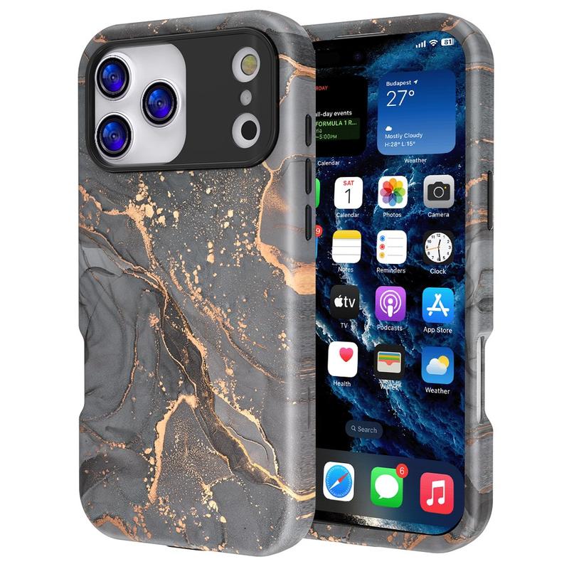 Protege tu iPhone 17 Pro Max con estilo con esta funda Marble, fabricada con PC + TPU de alta calidad mediante una avanzada tecnología de impresión por transferencia de agua. El resultado es una funda duradera y elegante con un acabado suave y llamativo.