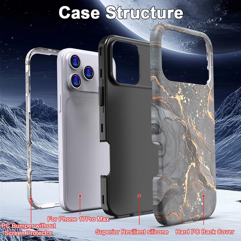 • Funda híbrida de mármol de lujo para iPhone 17 Pro Max - Elegante funda de PC y TPU a prueba de golpes con protección para la cámara