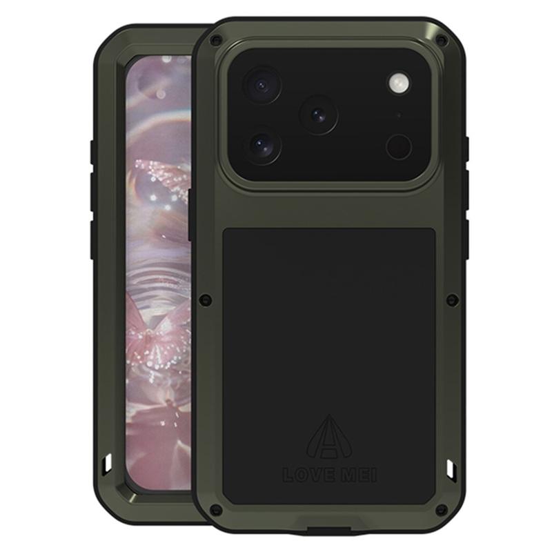Funda híbrida Love Mei Powerful para iPhone 17 Pro - Metal Resistente y Silicona Cubierta Protectora a Prueba de Golpes