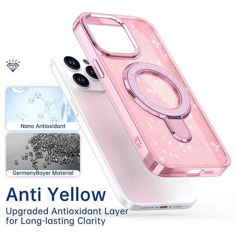 Funda híbrida iPhone 17 Glitter con soporte - Compatible con MagSafe - Rosa