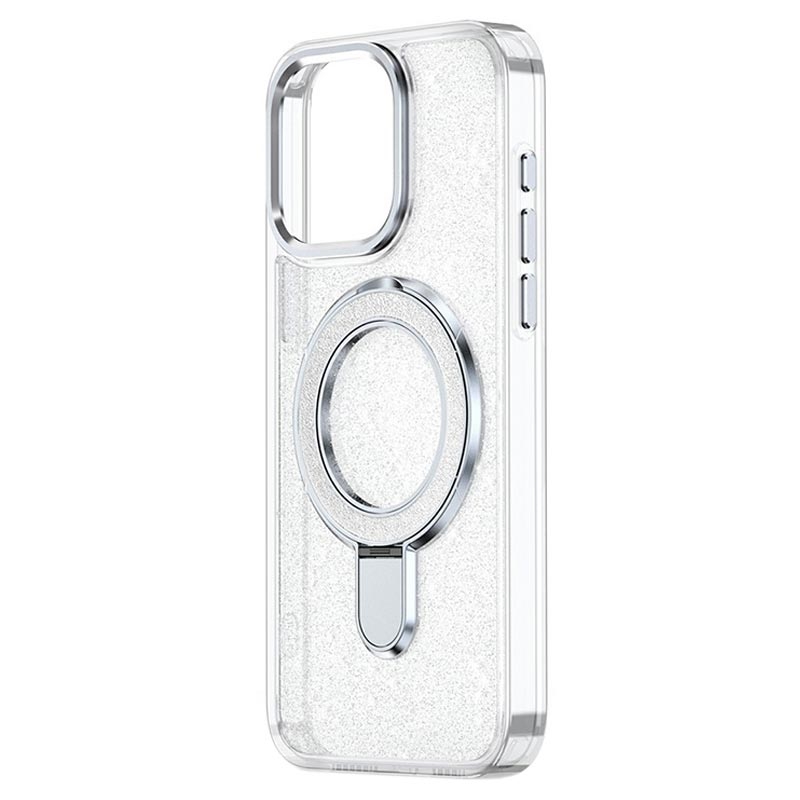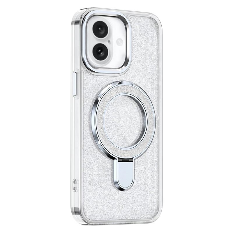 Funda híbrida iPhone 17 Glitter con soporte - Compatible con MagSafe - Transparente