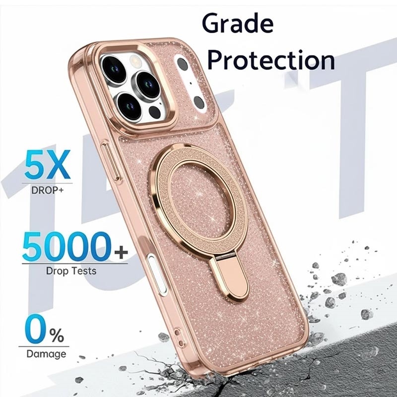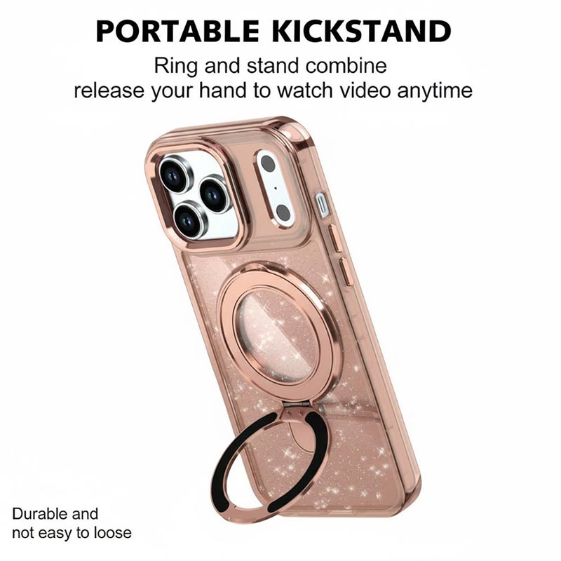 • Funda de purpurina con soporte para iPhone 17 Pro Max - Compatible con MagSafe Funda híbrida de TPU + PC con soporte para iPhone 17 Pro Max