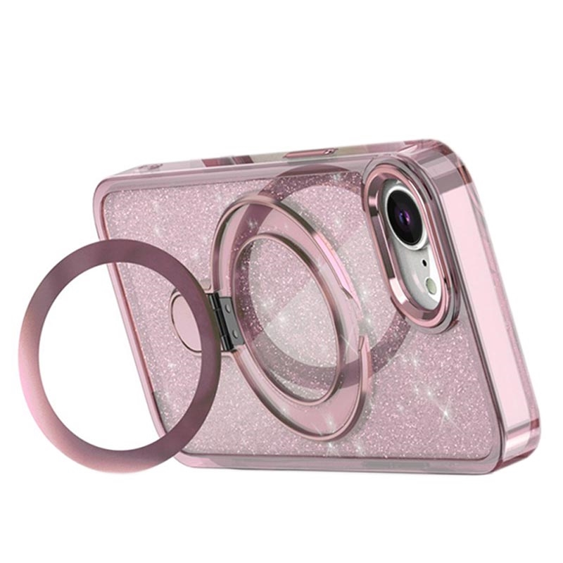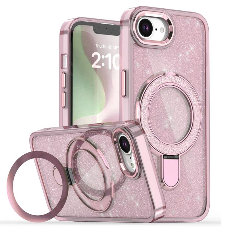 Funda híbrida iPhone 16e Glitter con soporte - Compatible con MagSafe - Rosa