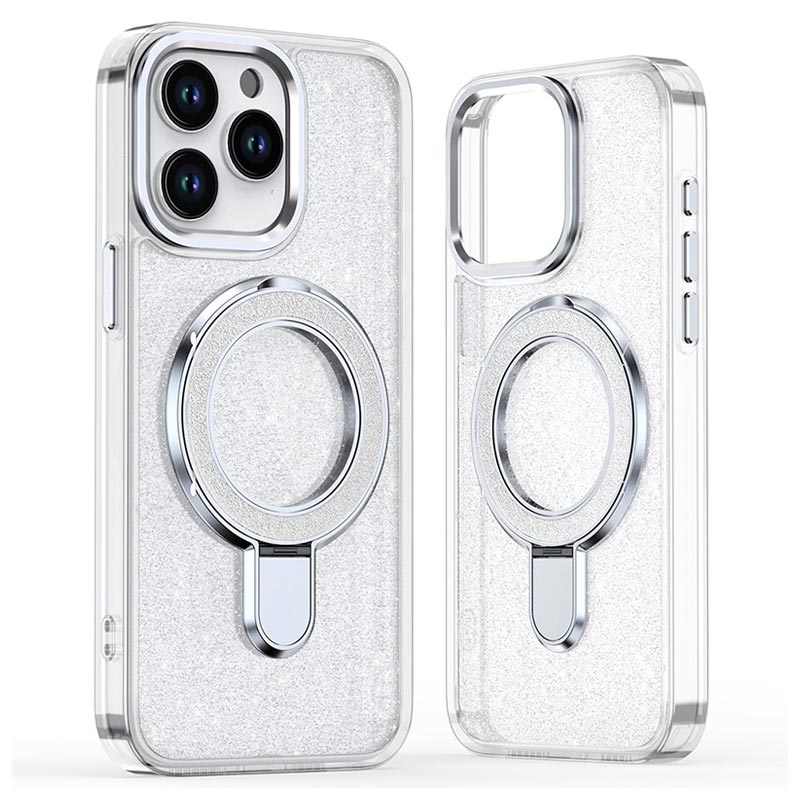 Funda híbrida iPhone 16 Pro Max Glitter con soporte - Compatible con MagSafe - Transparente