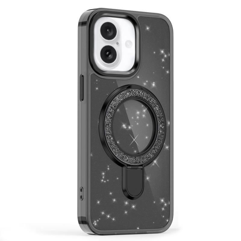 • Funda de purpurina con soporte para iPhone 16 - Compatible con MagSafe Funda híbrida de TPU + PC con soporte para iPhone 16