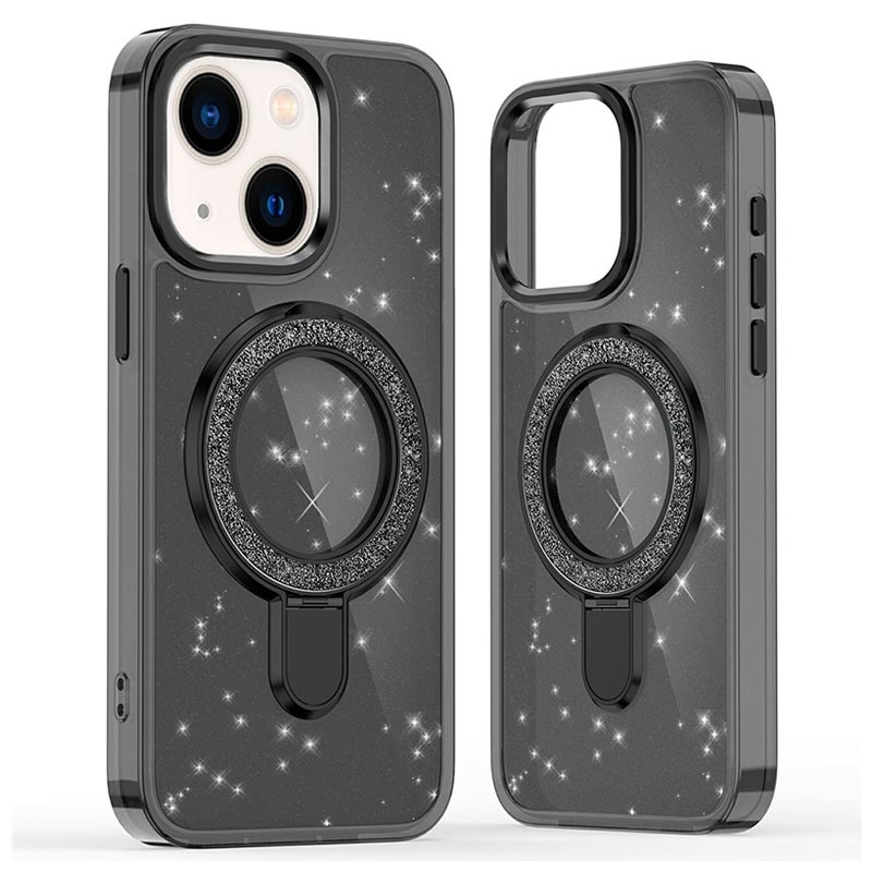 Funda híbrida iPhone 15 Glitter con soporte - Compatible con MagSafe