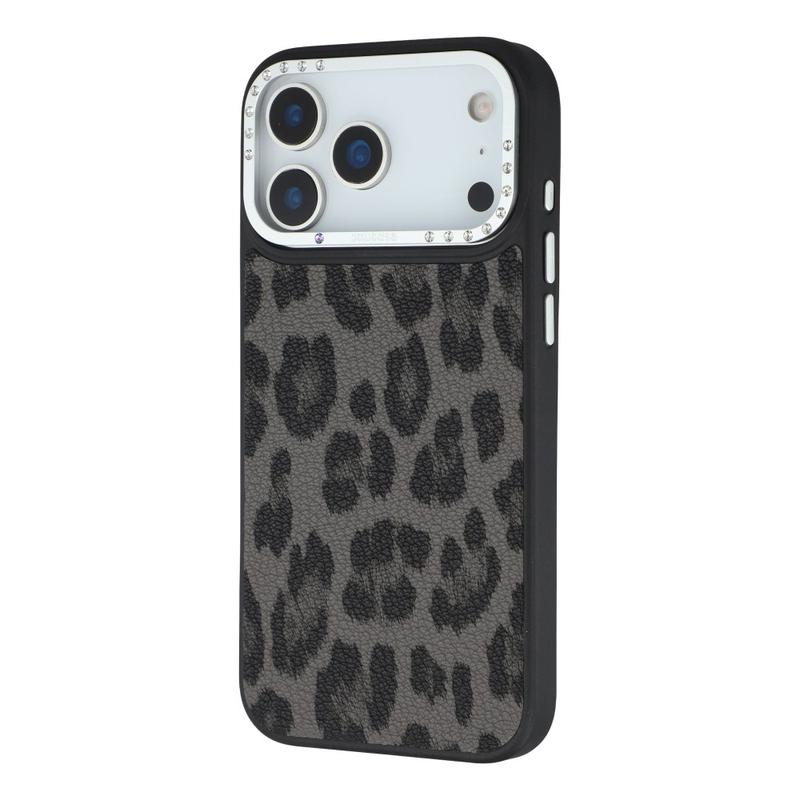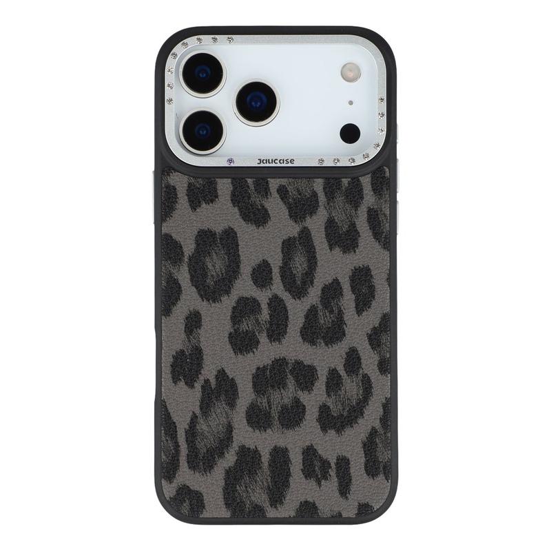 • Jaucase Funda Híbrida Magnética con Estampado de Leopardo para iPhone 17 Pro Max - PU + TPU + PC con Marco de Lente de Rhinestone