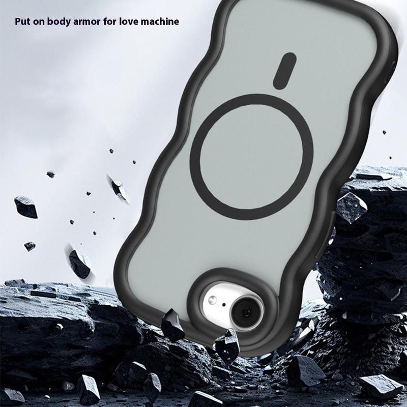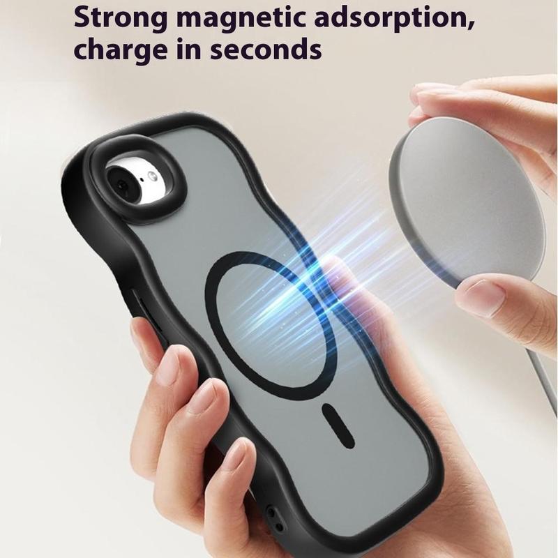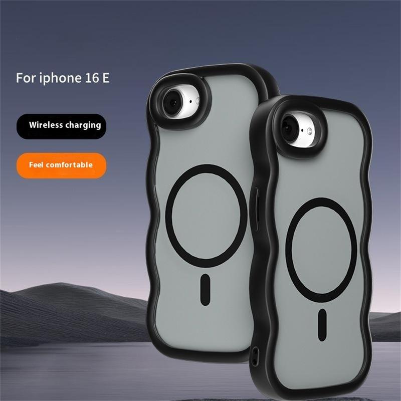 • Funda híbrida magnético con borde ondulado para iPhone 16e - Funda protectora de TPU + PC compatible con MagSafe