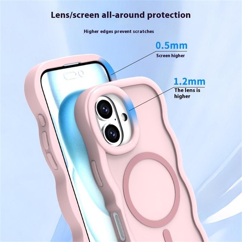 • Funda híbrida magnético con borde ondulado para iPhone 16 - Funda protectora de TPU + PC compatible con MagSafe