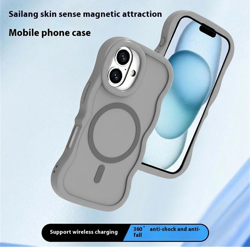 Funda híbrida magnético con borde ondulado para iPhone 16 - Gris
