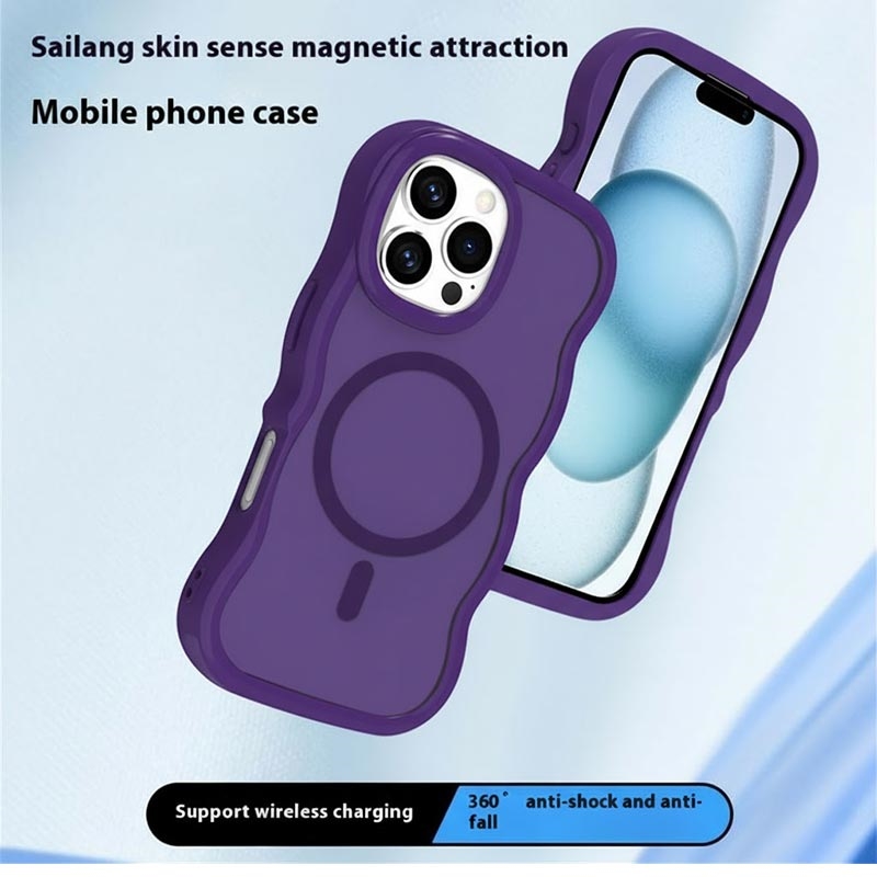 Funda híbrida magnético con borde ondulado para iPhone 16 - Morado