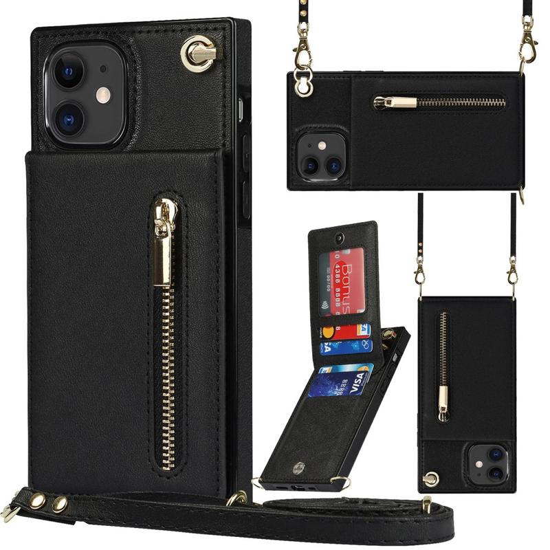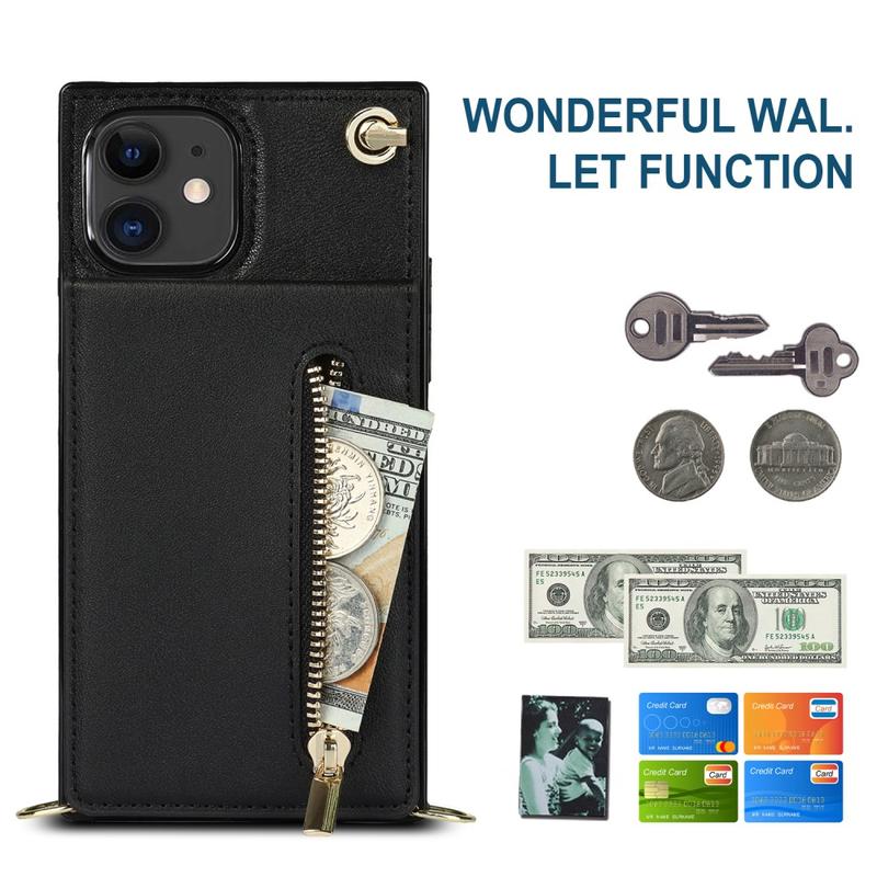Funda híbrida para iPhone 11 con cartera y cordón