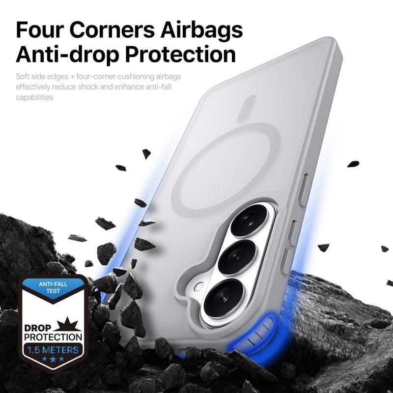 Protege tu Samsung Galaxy S26+ con una elegante funda mate que se acopla directamente a los cargadores y accesorios MagSafe. La serie Yind combina una placa posterior de PC resistente a los arañazos con bordes de TPU que absorben los golpes y un anillo magnético alineado con precisión, lo que proporciona alimentación sin cables y protección total contra caídas sin necesidad de bolsillos voluminosos.