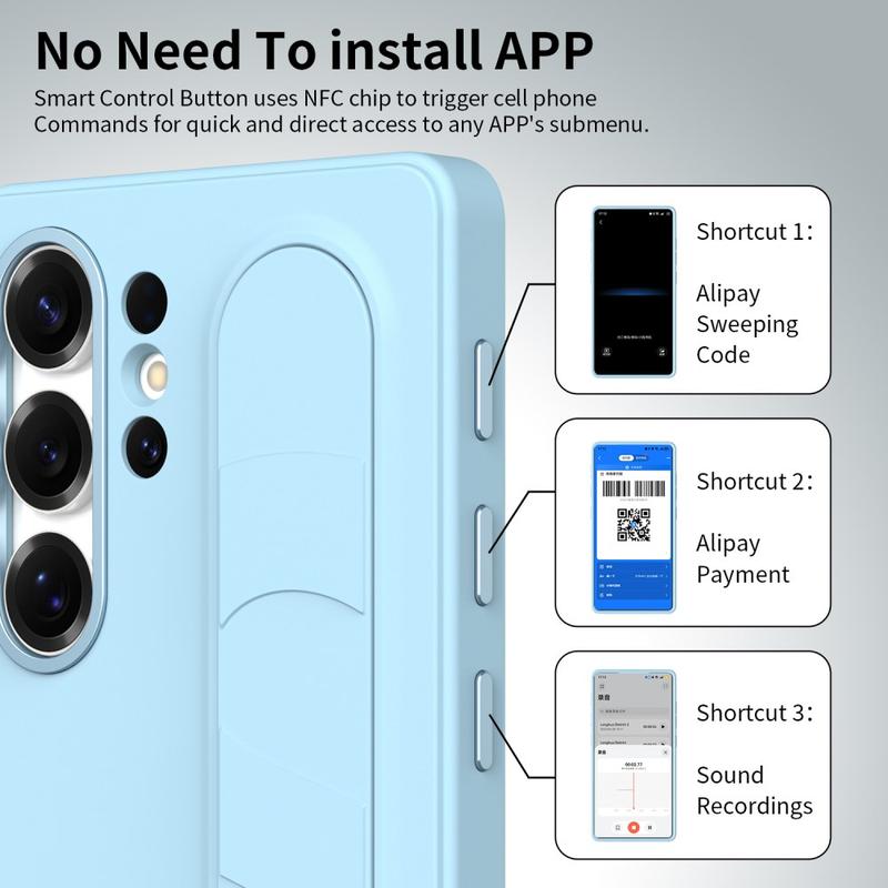 Equipada con tres botones inteligentes habilitados para NFC, esta funda híbrida inteligente te permite configurar el acceso rápido a aplicaciones como Cámara, Linterna o Captura de pantalla con una sola pulsación. Sin carga, sin aplicaciones adicionales, solo funcionalidad simple e instantánea.