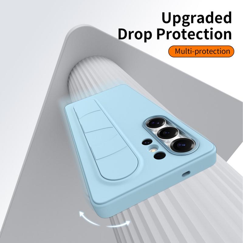 Con un diseño de cuatro esquinas que absorbe los golpes, la funda híbrida inteligente Samsung Galaxy S26 Ultra con agarre y soporte mantiene tu dispositivo a salvo de caídas, golpes y el uso diario.
