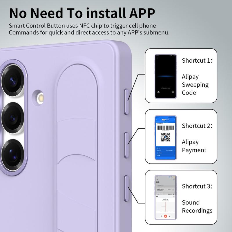 Equipada con tres botones inteligentes habilitados para NFC, esta funda híbrida inteligente te permite configurar el acceso rápido a aplicaciones como Cámara, Linterna o Captura de pantalla con una sola pulsación. Sin carga, sin aplicaciones adicionales, solo funcionalidad simple e instantánea.