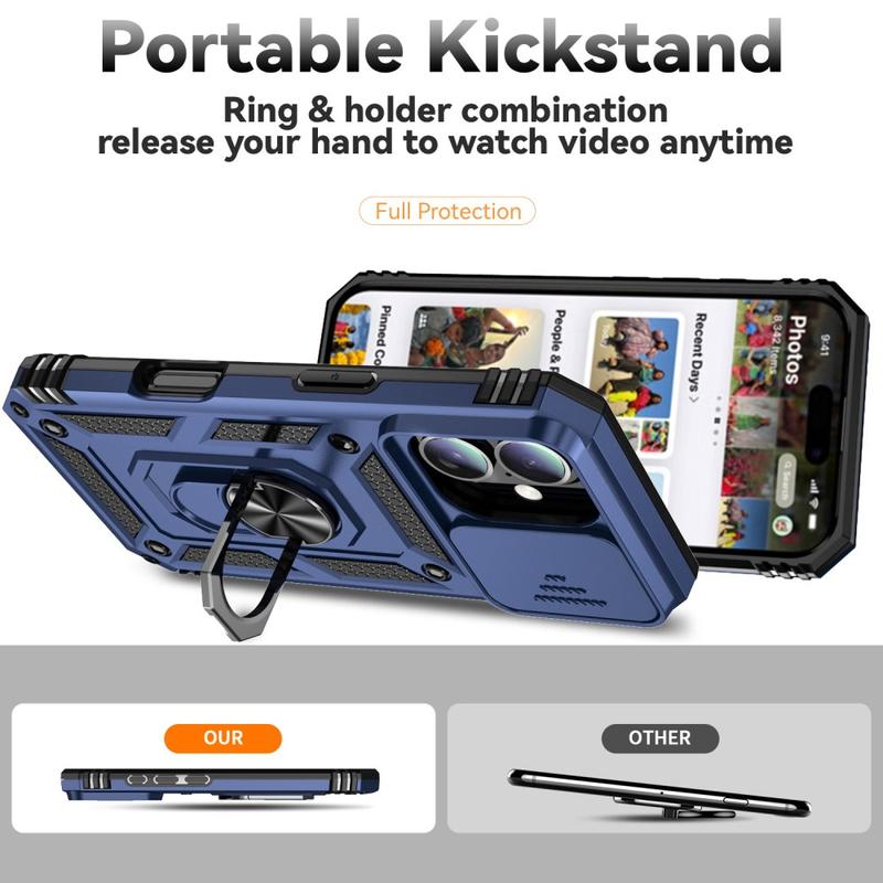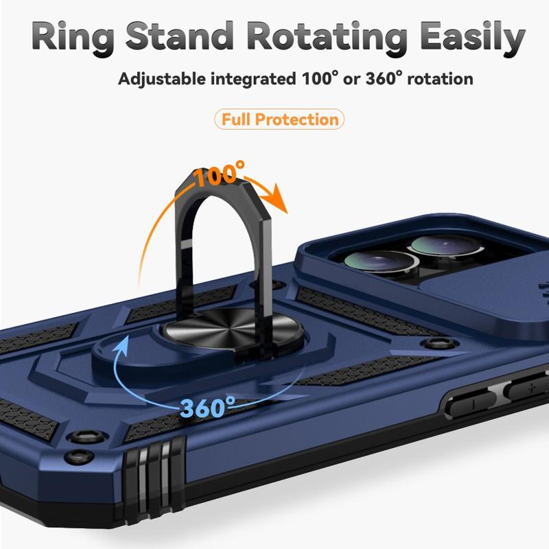 Funda Híbrida con Anillo Giratorio y Protector de Cámara para iPhone 16 - Azul