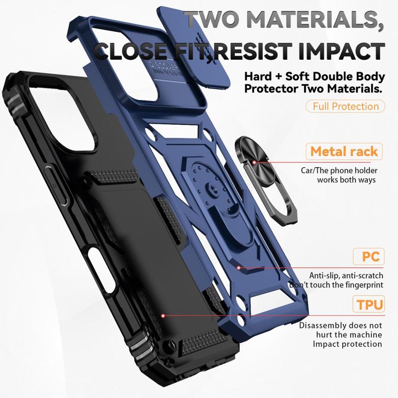 • Funda Híbrida con anillo giratorio y protector de cámara para iPhone 16
