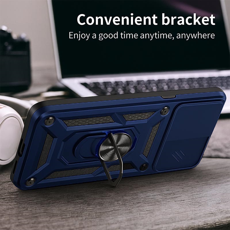Funda híbrida con anillo giratorio y protector de cámara para Motorola Edge 70 - Azul