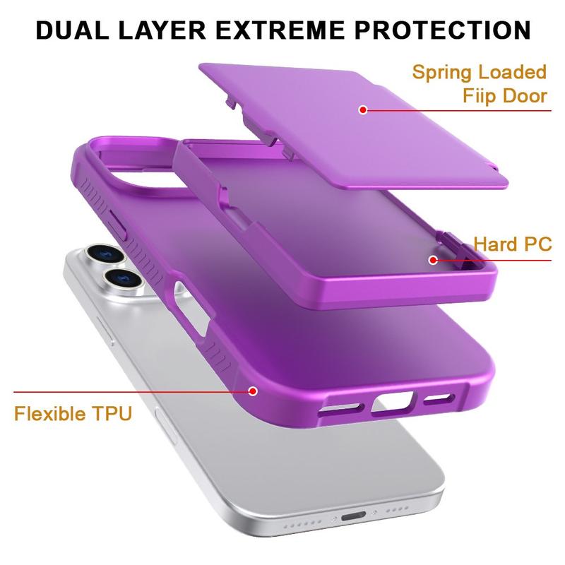 Funda Híbrida con Espejo y Tarjetero para iPhone 16 Pro - Púrpura