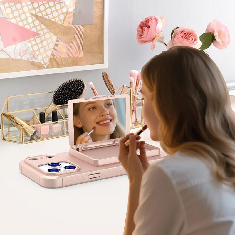 Funda Híbrida con Espejo y Tarjetero para iPhone 17 Pro Max - Rosa