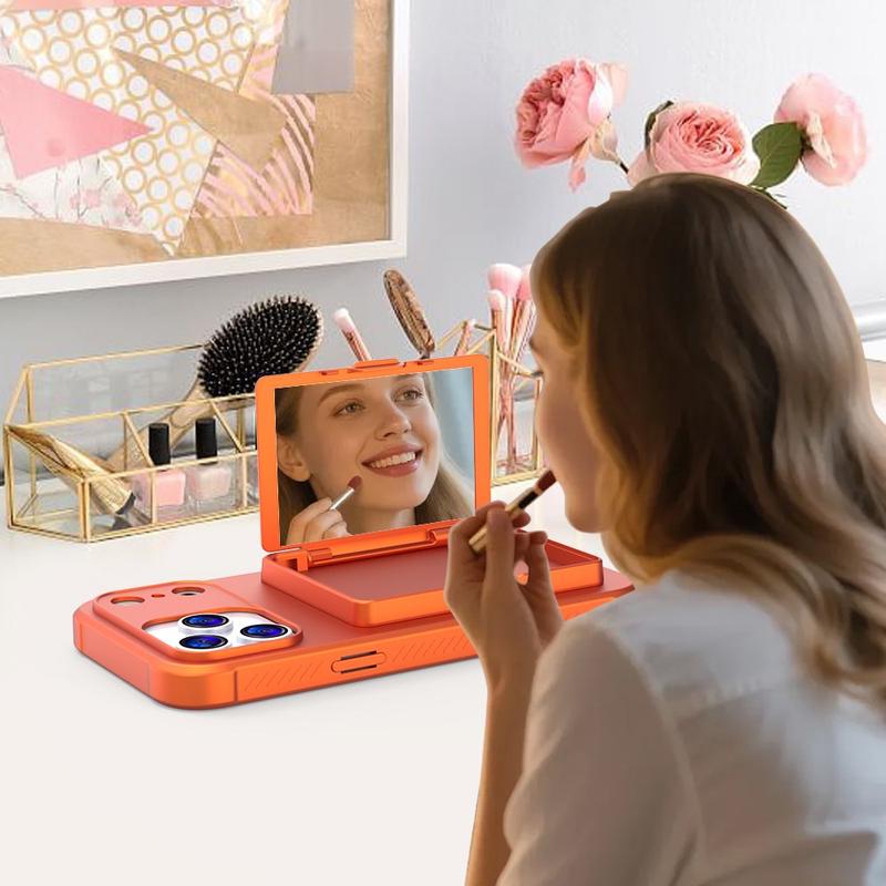 Funda Híbrida con Espejo y Tarjetero para iPhone 17 Pro Max - Naranja