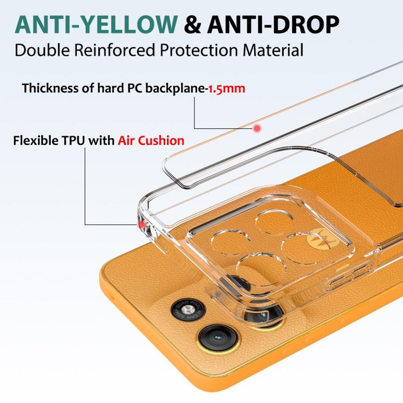 Este accesorio utiliza una combinación de acrílico y TPU para mantener su teléfono inteligente en perfectas condiciones. Mientras tanto, las esquinas reforzadas que absorben los golpes evitan daños por caídas, mientras que el diseño transparente muestra el magnífico diseño de su Motorola Moto G17 Power, Moto G17, Moto G15.