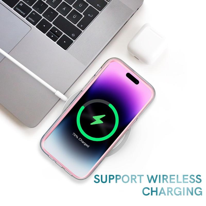 El marco frontal de PC duro incluye un protector de pantalla integrado para mayor seguridad, mientras que el diseño de 2 piezas garantiza una instalación fácil y cómoda, con soporte para carga inalámbrica. La fabricación con patrón IMD garantiza que la elegante imagen de tu funda nunca se desvanecerá, manteniéndote siempre a la moda.