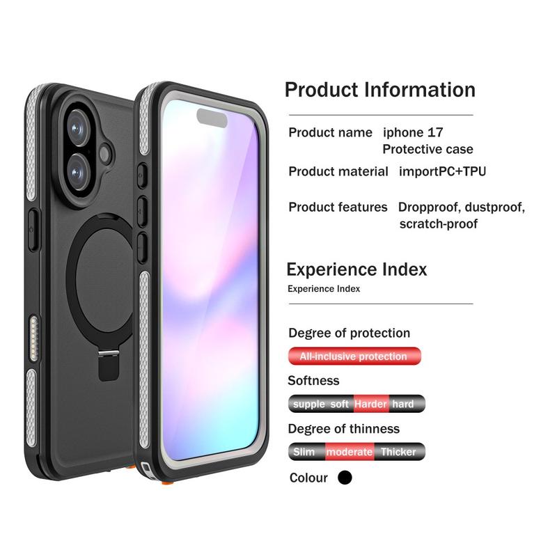 La funda impermeable IP68 de Redpepper combina una durabilidad resistente con la comodidad moderna. Con su compatibilidad MagSafe, su fuerte sellado impermeable y su práctico soporte, mantiene tu iPhone 17 seguro, funcional y listo para cualquier aventura.