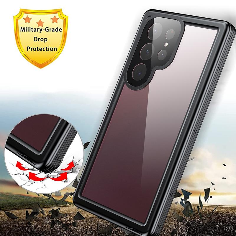 Protect your Samsung Galaxy S23 Ultra 5G from water, dust, and impact. This waterproof case combines the highest quality materials to ensure that your Samsung Galaxy S23 Ultra 5G is always safe. Completely sealed from weather elements you can carry it wherever you go, skiing, snowboarding, swimming, kayaking, or relaxing in the bath. IP68 certified guarantees it can withstand up to 10m underwater.