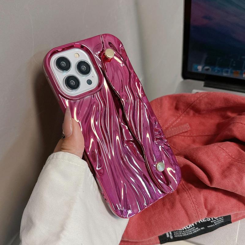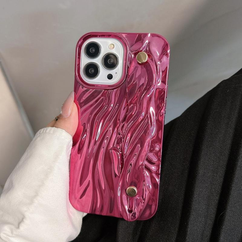 Funda iPhone 15 Pro Max Arrugada de TPU Electrochapado - Rosa Fuerte