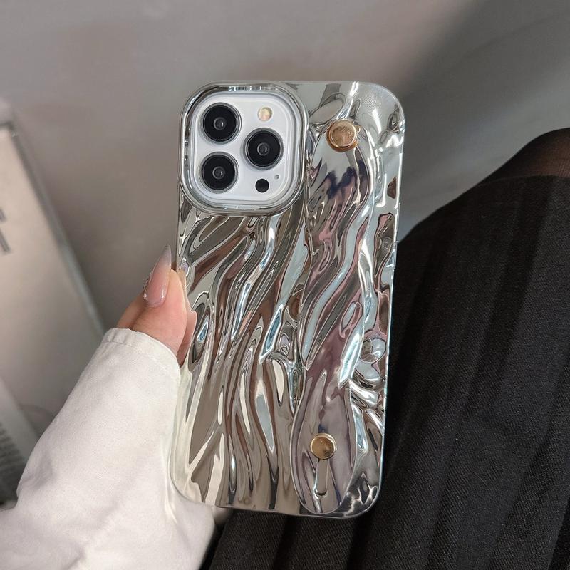 Funda iPhone 15 Pro Max Arrugada de TPU Electrochapado - Plata