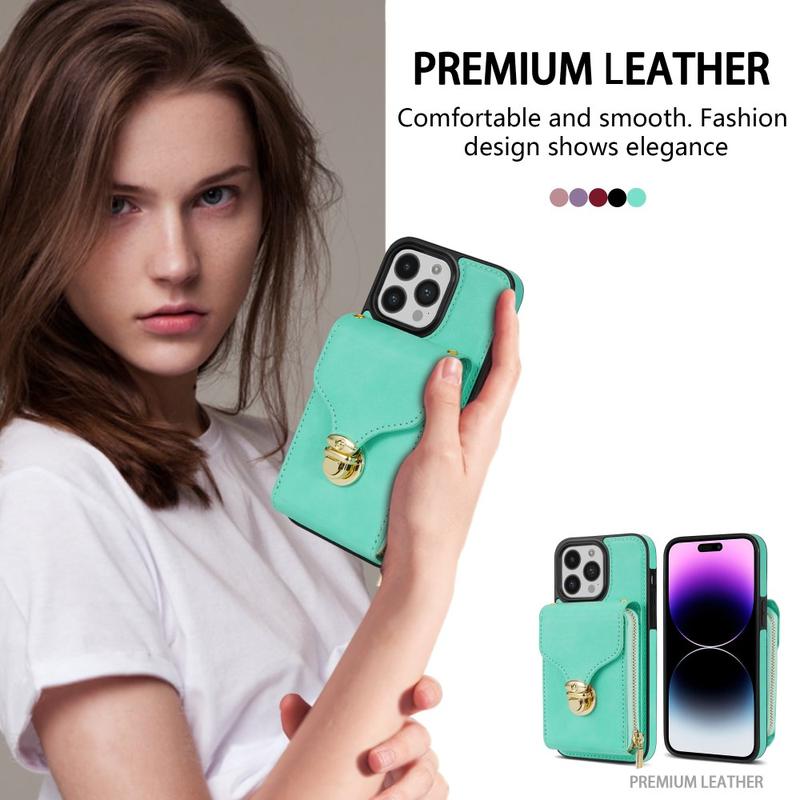 • Funda protectora todo en uno de TPU con cartera y correa para iPhone 15 Pro Max