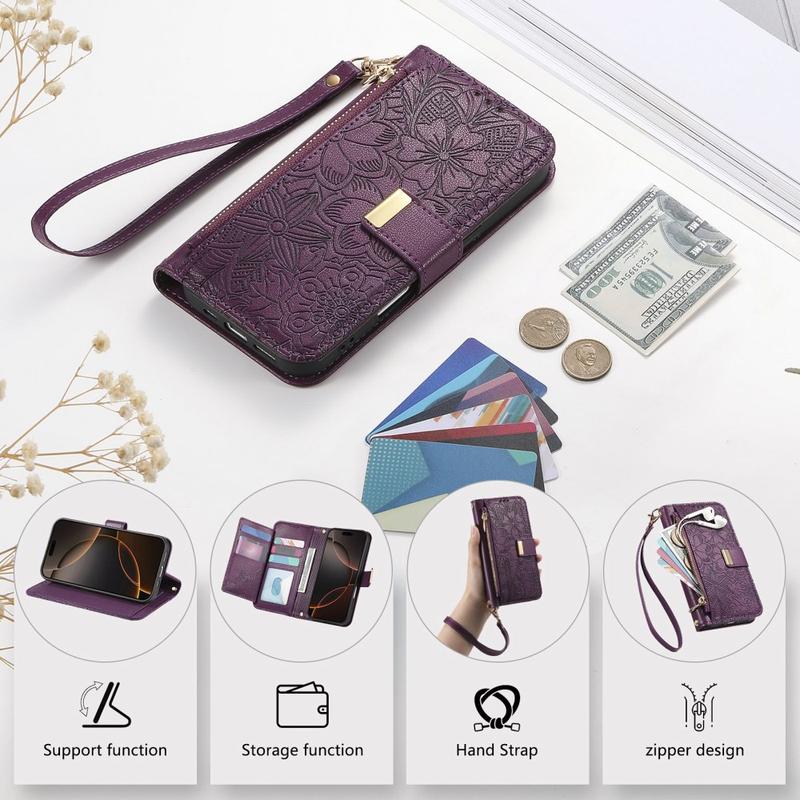 A diferencia de las fundas normales para iPhone 16, esta funda monedero todo en uno combina protección, organización y elegancia. El estampado floral le da un toque de estilo, mientras que el bolsillo con cremallera y la correa para la muñeca proporcionan una comodidad inigualable para la vida diaria y los viajes.