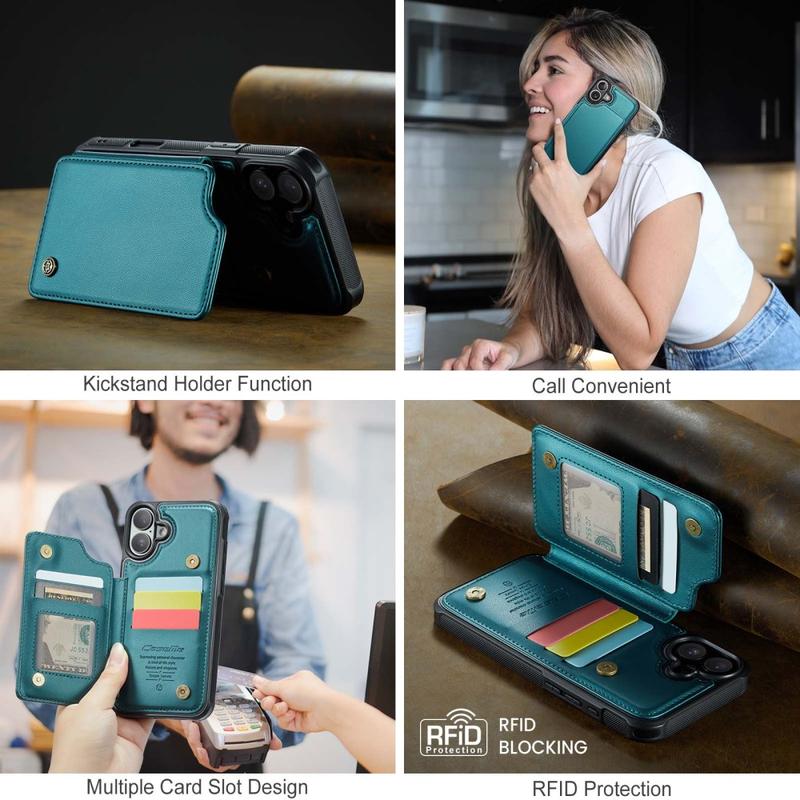 • Funda Caseme C22 para iPhone 16 Plus con monedero para tarjetas con protección RFID