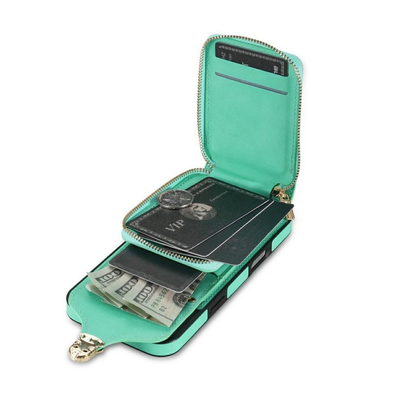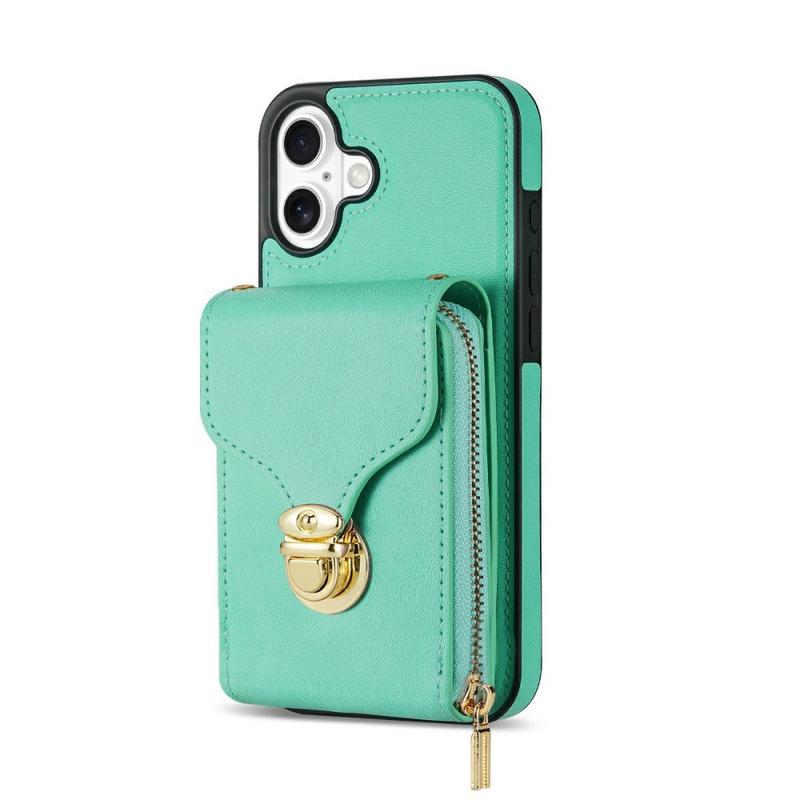 Funda iPhone 17 Todo en Uno con Cartera y Correa - Menta