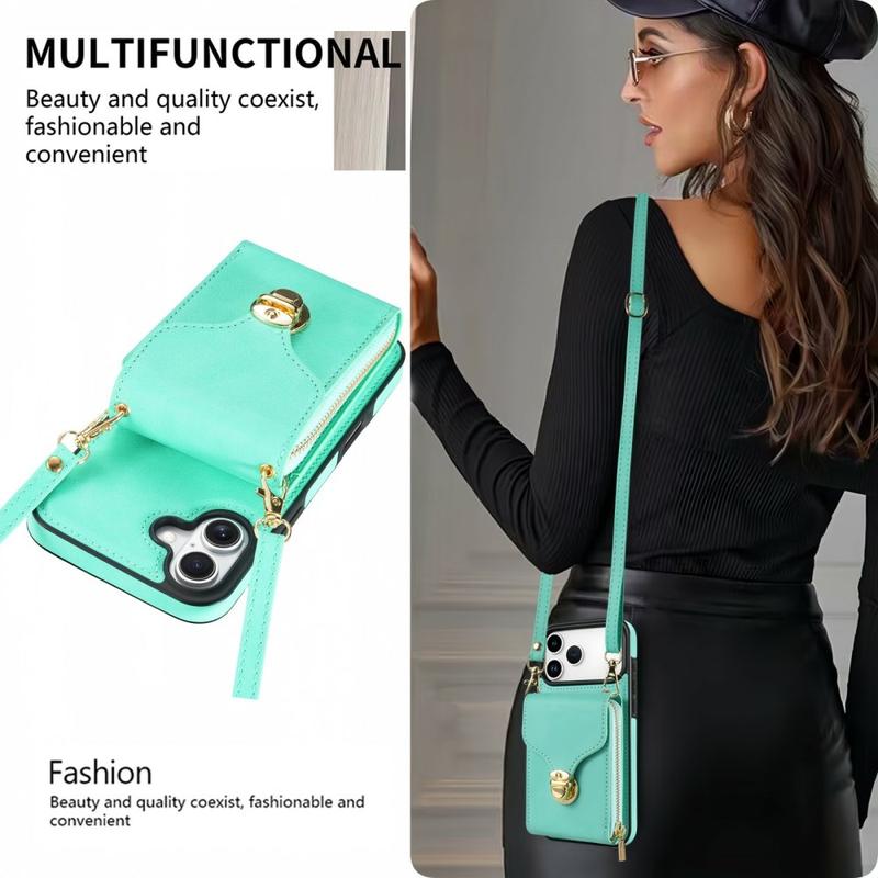 • Funda protectora todo en uno de TPU con cartera y correa para iPhone 17