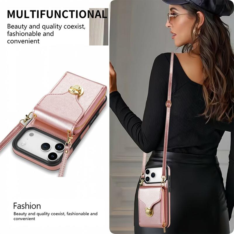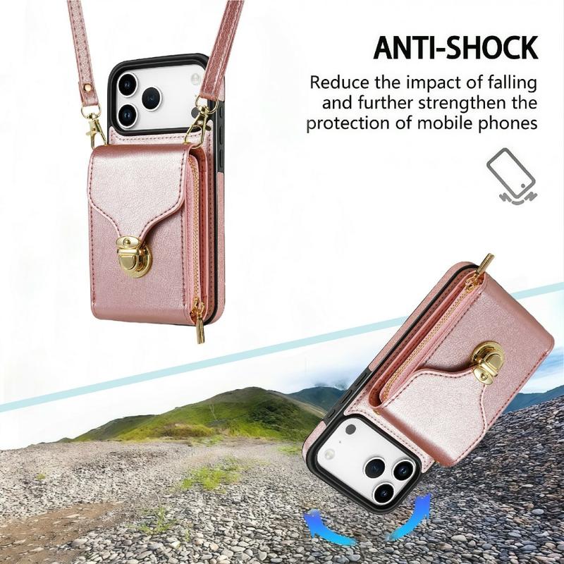 • Funda protectora todo en uno de TPU con cartera y correa para iPhone 17 Pro